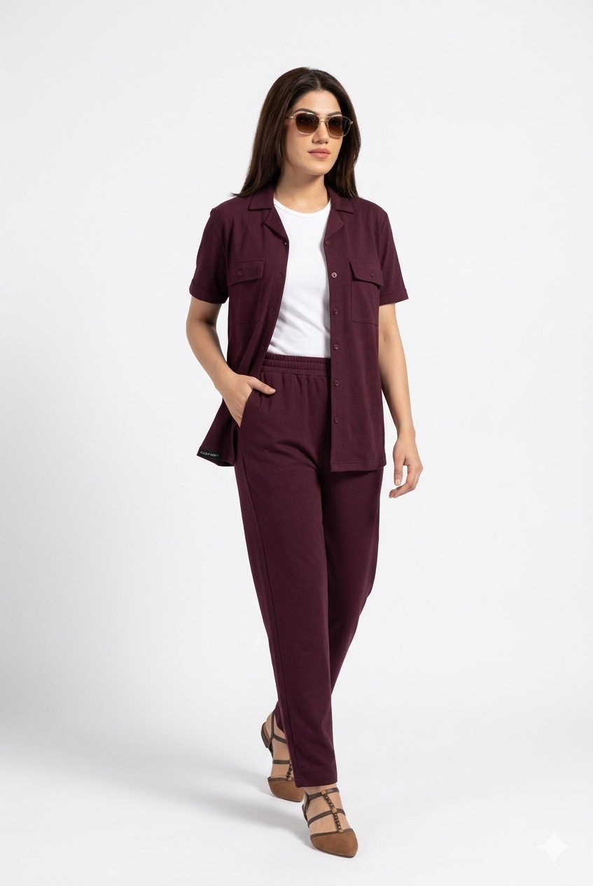 Womens - Imported Tracksuit - Safari Co-Ord Set - Maroon