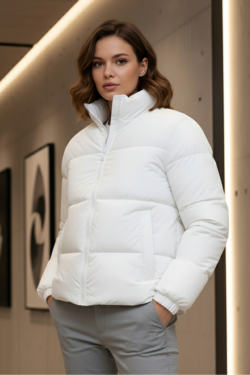 Women's - Puffer Jacket (Full Sleeves) - White