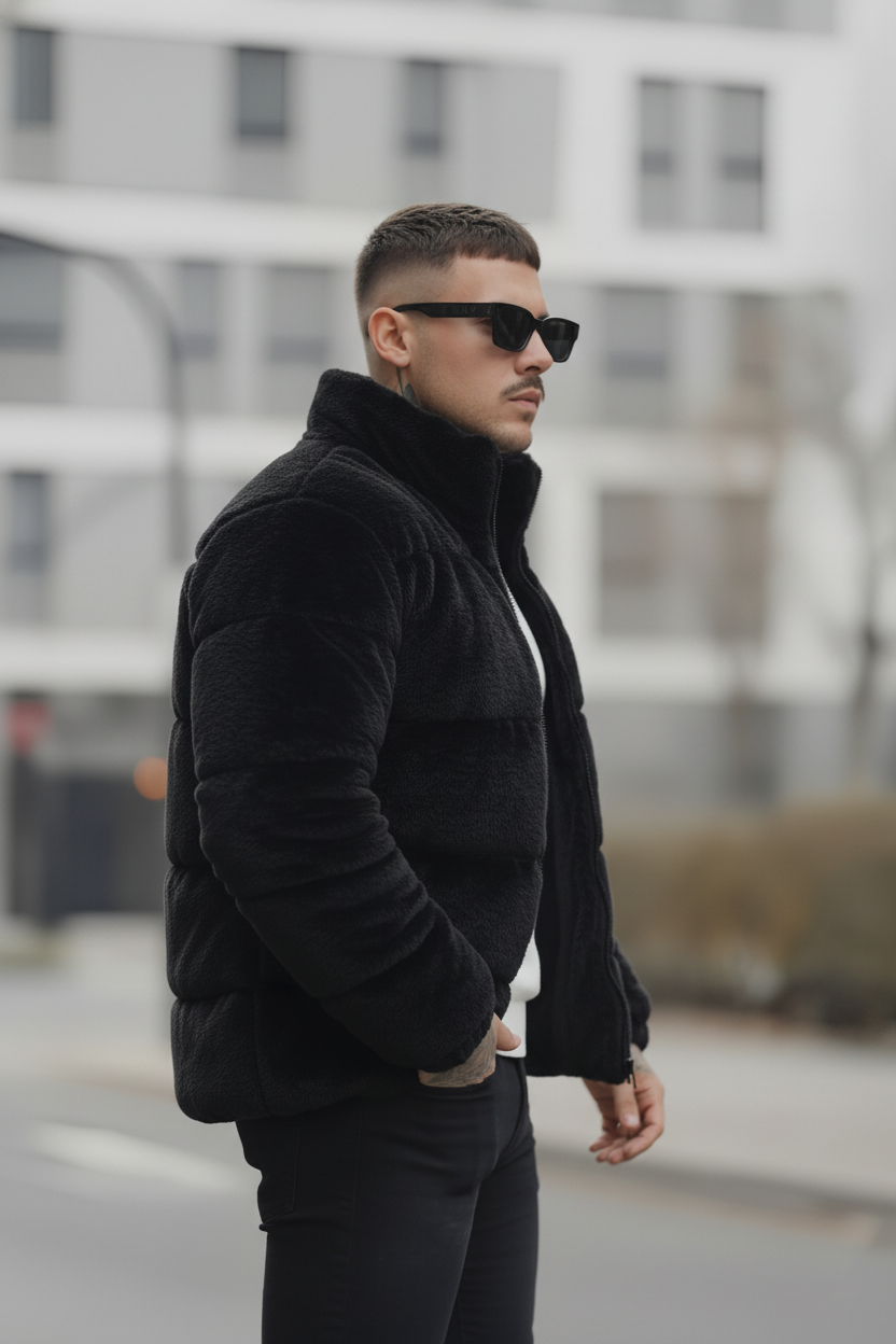 Menβs Sherpa Puffer Jacket β Black