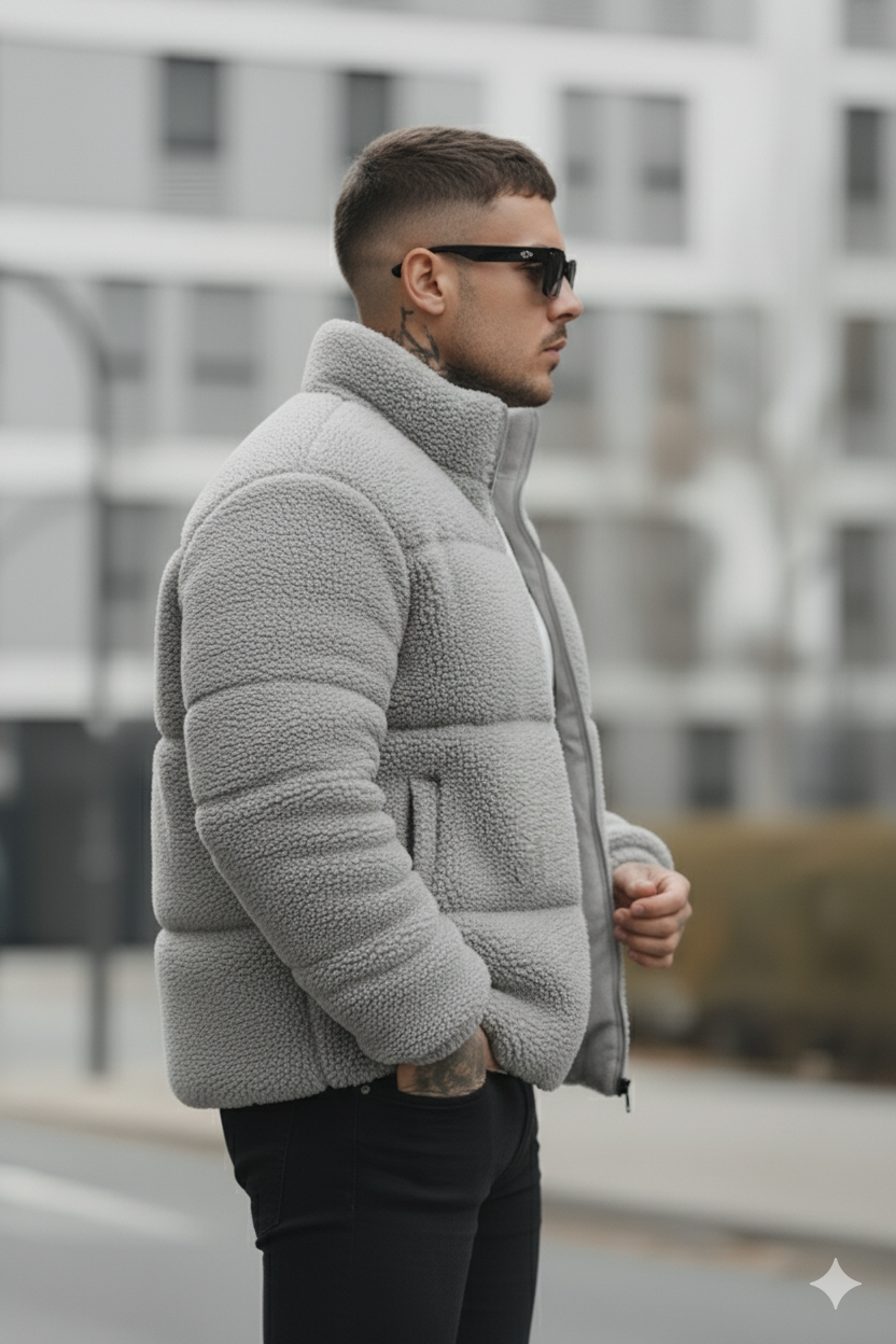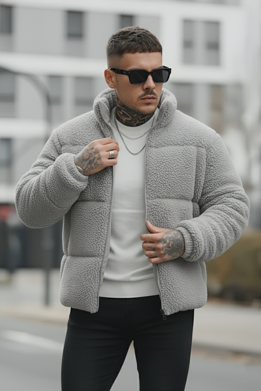 Men’s Sherpa Puffer Jacket – Gray ( Light )