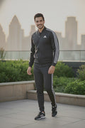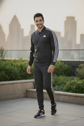 Mens - Winter Tracksuit - Adi Black with White Strips