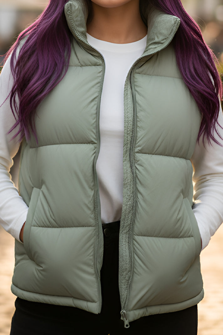 Women's - Puffer Jacket (Half Sleeves) - Green